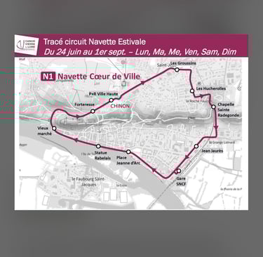 NAVETTE GRATUITE DEVANT LA MAISON, pour visiter Chinon, Passage toutes les 15 min